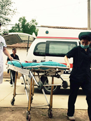 一.沧州正规救护车长途护送告诉您Heimlich手法(又称腹部手拳冲击法)1.成人方法(清醒病人):(1)救援人员站在病人身后,用手臂环绕病人的腰部;(2)抢救者一手握拳,将拇指侧方放在患者胸廊下和脐上腹部;(3)另一只手紧握拳头,迅速向上重复冲击,直至异物排除。2.婴儿方法:让病人平躺在坚硬的地面或床板上,面部向上,救援人员跪着或站在脚边。或救援人员坐着,让孩子骑在大腿上,背靠救援人员,用中指或